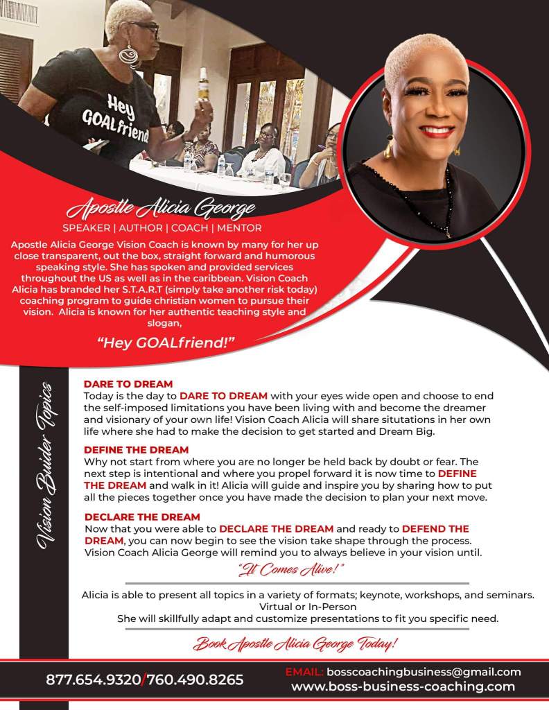 To inquire about fees and scheduling a speaking engagement with Alicia, please email her at bosscoachingbusiness@gmail.com. You may also contact her by phone at (877) 654-9320 or (760) 490-8265.
